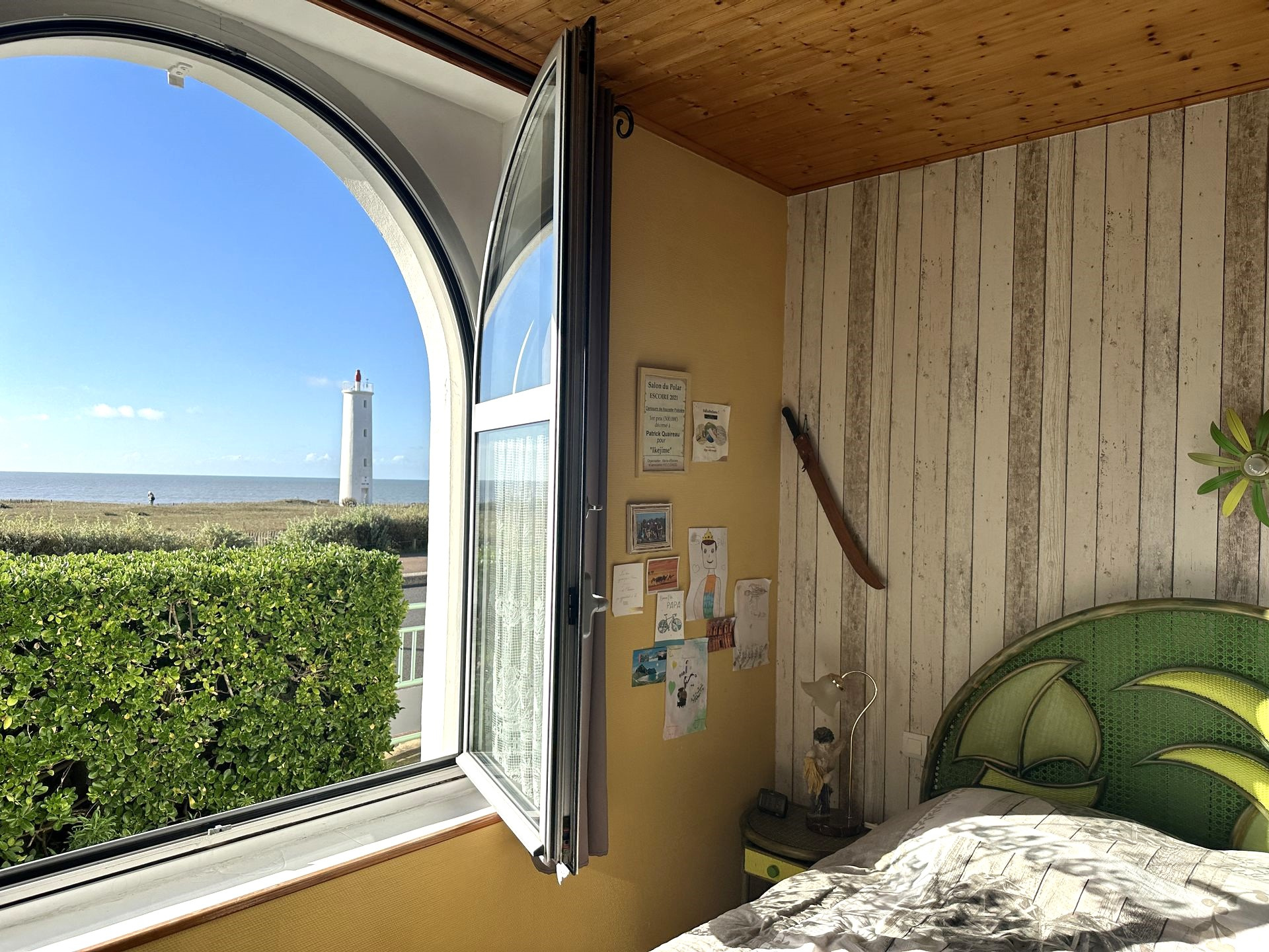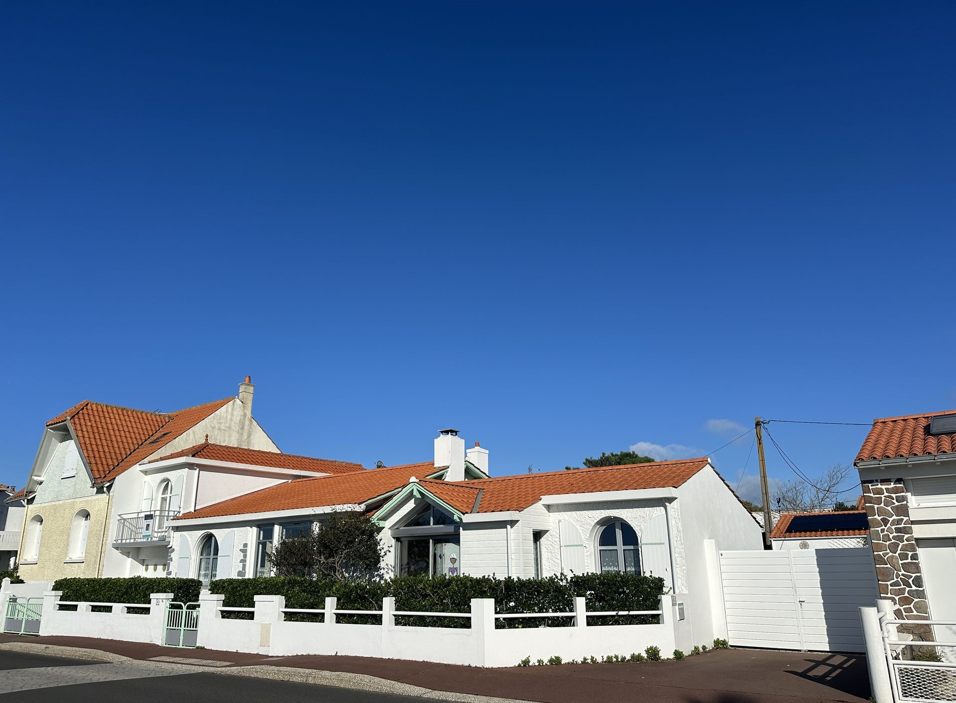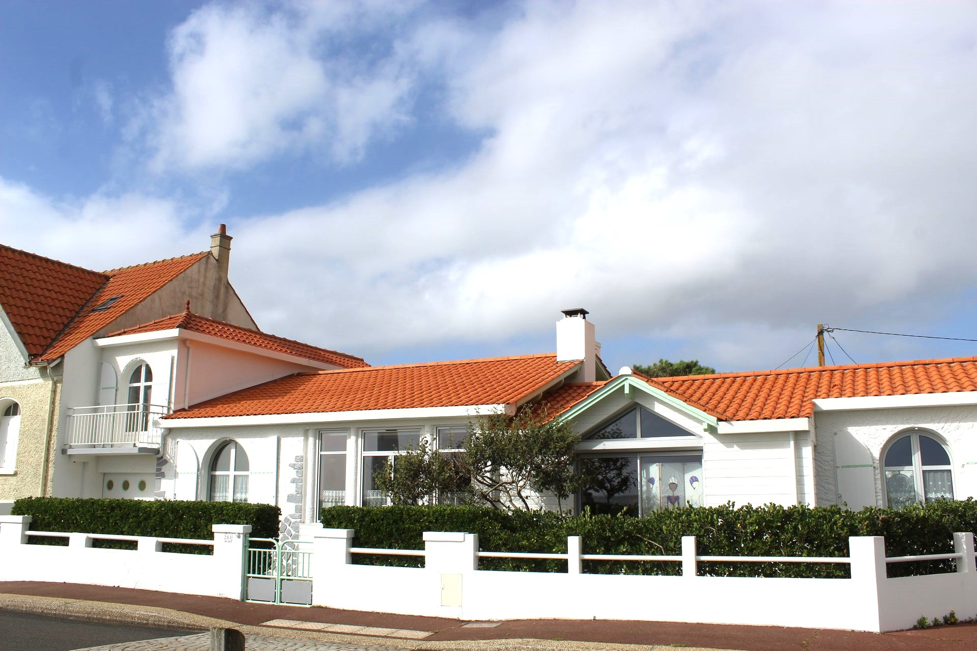 Construite fin des années 30, la maison a été agrandie en 1965 puis en 2007. Entre temps, de gros travaux ont été effectués en 1996 assurant un bon confort pour y vivre toute l'année. La surface habitable de 140 m2 ne comprend pas la véranda de 16 m2, agréable en mi saison. Cette villa a une vue magnifique sur le Feu de Grosse Terre et l'océan. Son studio, à l'étage, profite de la meilleure vue, dominant un peu plus la corniche. Le jardin est arboré et décoré de multiples coquillages, rappelant la proximité immédiate de la corniche et de ses criques. Le stationnement de plusieurs voitures est possible, en plus des 2 garages (36 m2 et 23 m2). Le terrain compte un peu plus de 700 m2, et la façade sur l'océan est d'environ 23 m. Vous pouvez alors avoir envie d'optimiser la vue en montant un étage, partiel ou total, voire démolir et construire une résidence de plusieurs appartements, familiale ou commerciale. Dans la zone UC, 2 étages et un attique sont réalisables sous conditions et le coefficient biotop est de 0.4. Sur la corniche vendéenne, l'emplacement est agréable, tout proche des plages de la Pelle à Porteau, de Boisvinet, des criques abritées du vent et aussi du jardin promenade de la villa Grosse Terre. Côté pratique : chauffage au gaz de ville, panneaux solaires juste posés. Les informations sur les risques auxquels ce bien est exposé sont disponibles sur le site Géorisques : www.georisques.gouv.fr