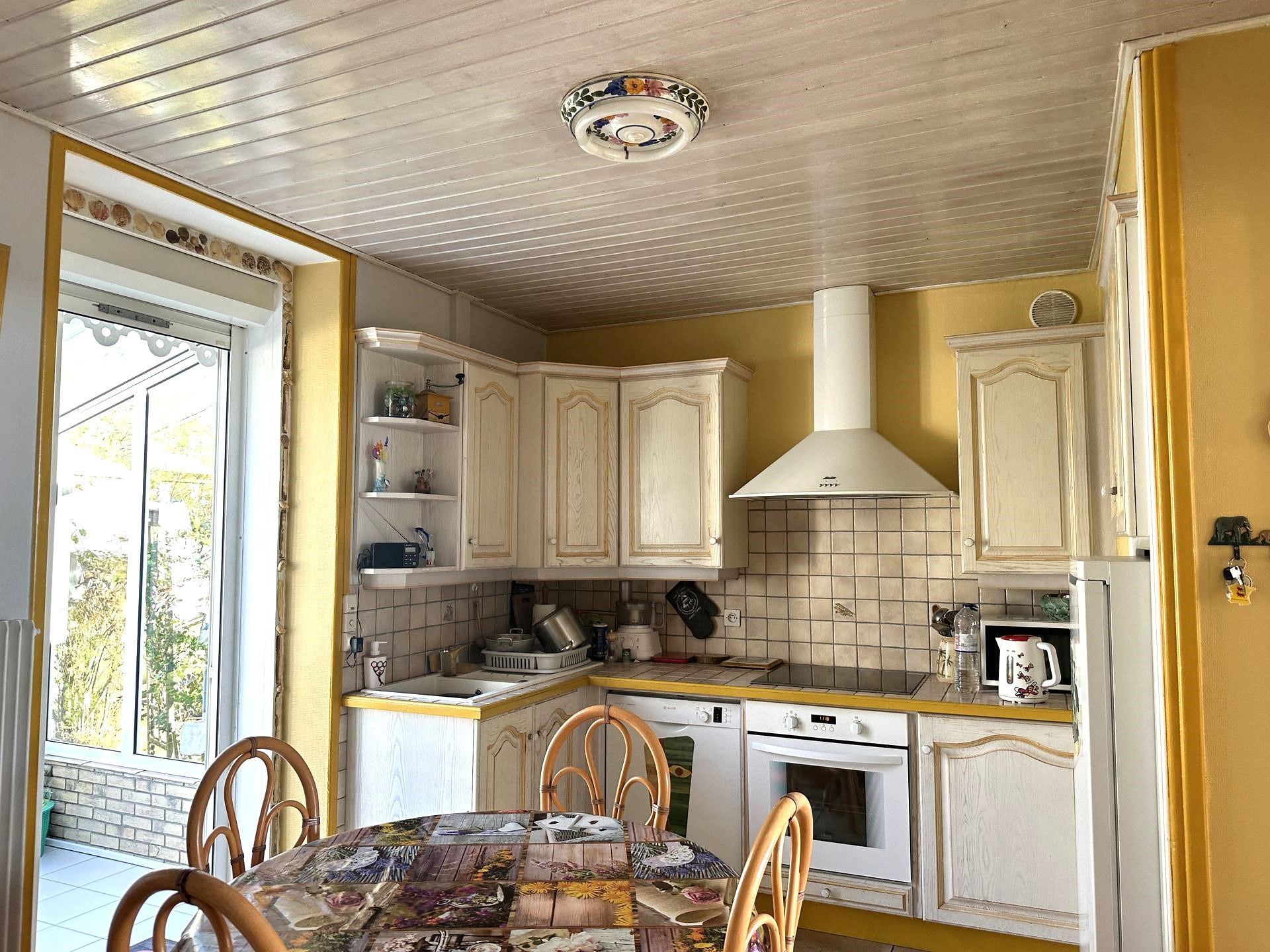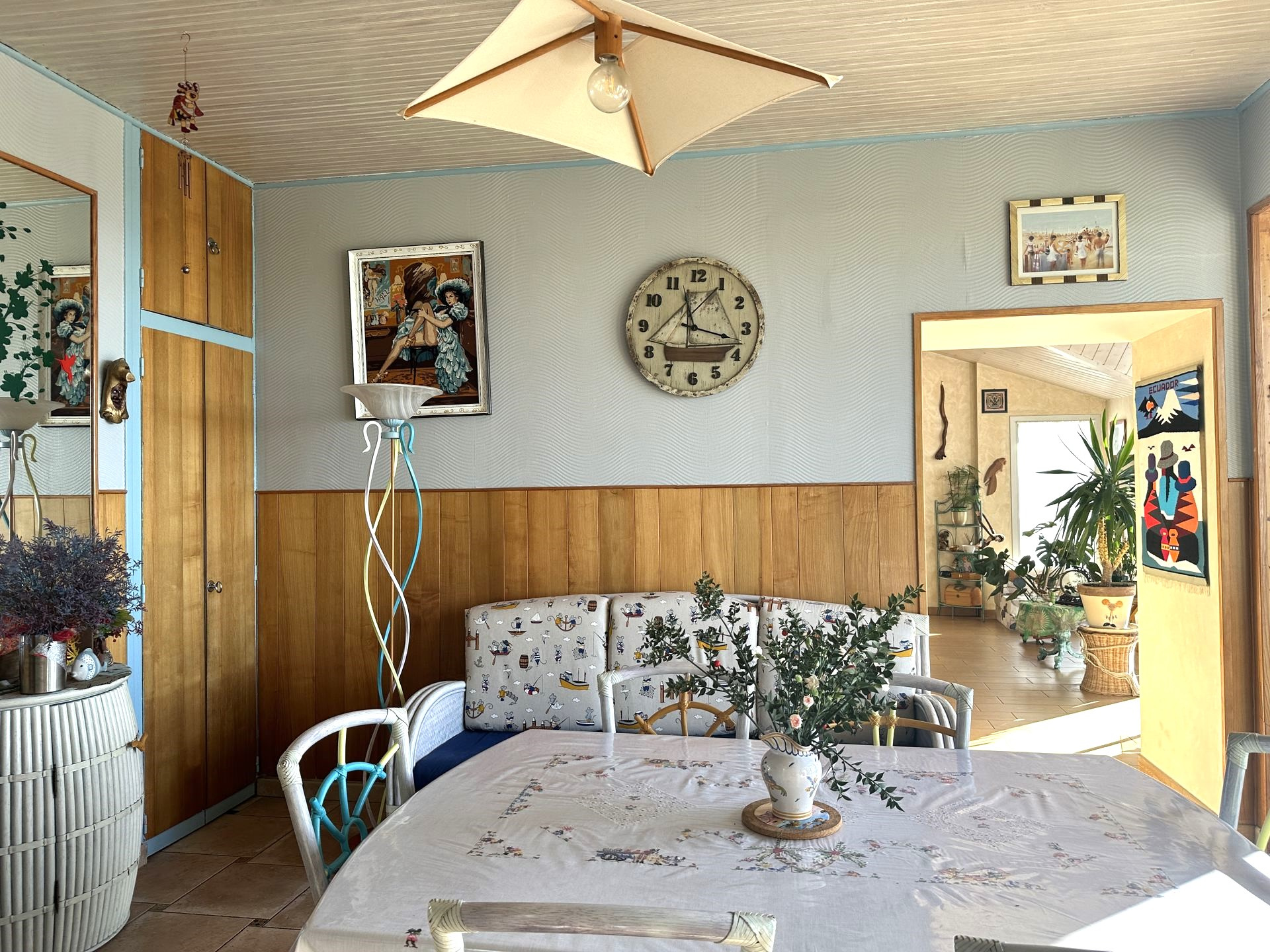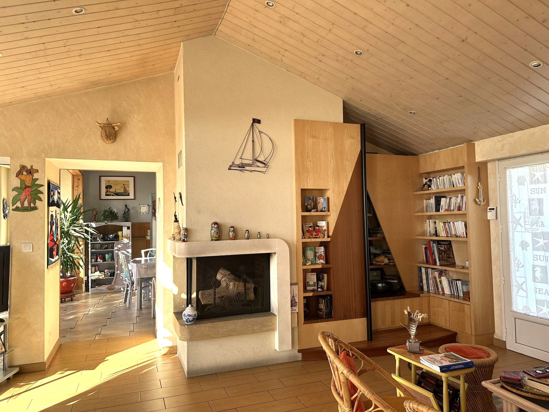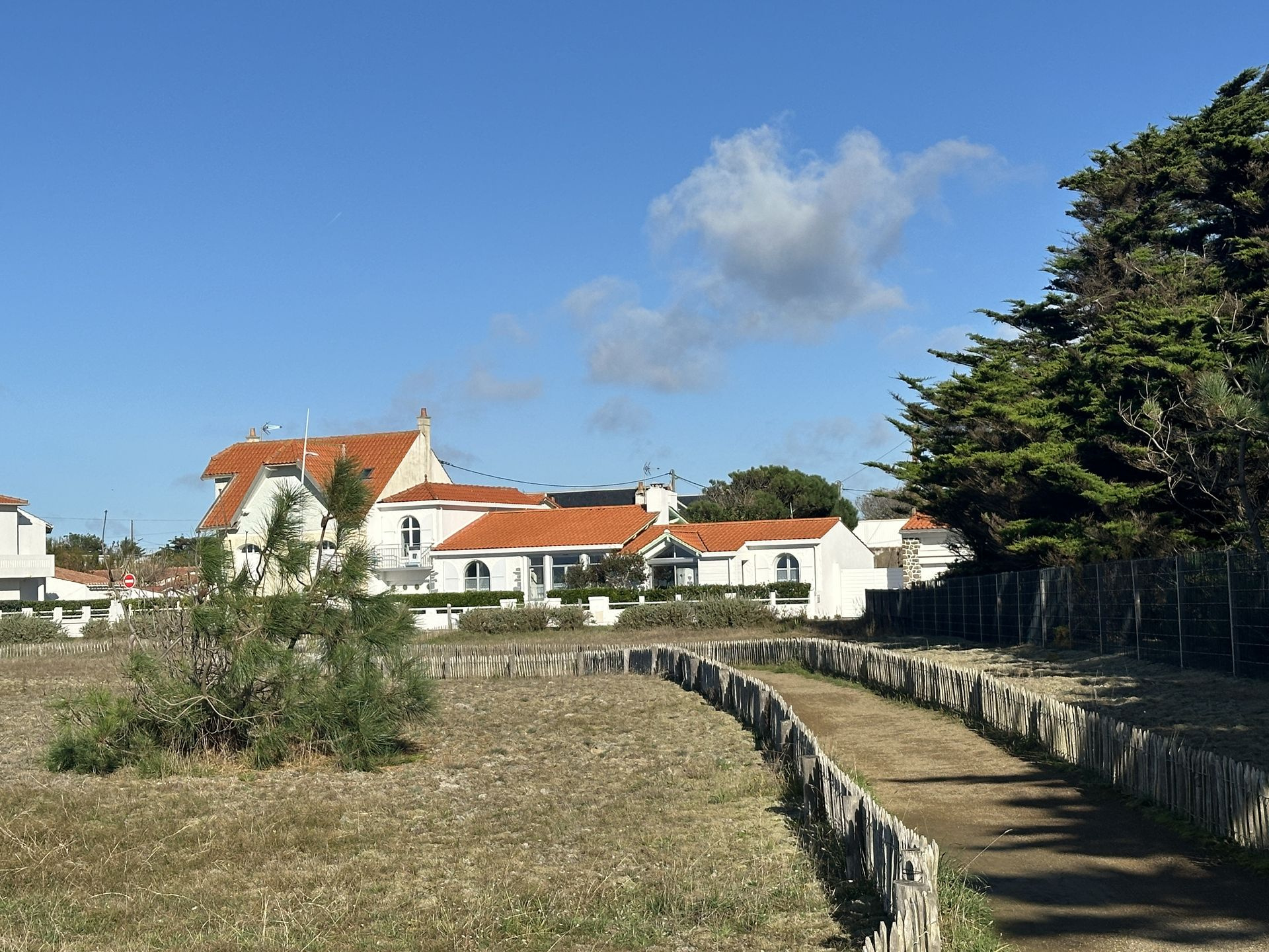 Construite fin des années 30, la maison a été agrandie en 1965 puis en 2007. Entre temps, de gros travaux ont été effectués en 1996 assurant un bon confort pour y vivre toute l'année. La surface habitable de 140 m2 ne comprend pas la véranda de 16 m2, agréable en mi saison. Cette villa a une vue magnifique sur le Feu de Grosse Terre et l'océan. Son studio, à l'étage, profite de la meilleure vue, dominant un peu plus la corniche. Le jardin est arboré et décoré de multiples coquillages, rappelant la proximité immédiate de la corniche et de ses criques. Le stationnement de plusieurs voitures est possible, en plus des 2 garages (36 m2 et 23 m2). Le terrain compte un peu plus de 700 m2, et la façade sur l'océan est d'environ 23 m. Vous pouvez alors avoir envie d'optimiser la vue en montant un étage, partiel ou total, voire démolir et construire une résidence de plusieurs appartements, familiale ou commerciale. Dans la zone UC, 2 étages et un attique sont réalisables sous conditions et le coefficient biotop est de 0.4. Sur la corniche vendéenne, l'emplacement est agréable, tout proche des plages de la Pelle à Porteau, de Boisvinet, des criques abritées du vent et aussi du jardin promenade de la villa Grosse Terre. Côté pratique : chauffage au gaz de ville, panneaux solaires juste posés. Les informations sur les risques auxquels ce bien est exposé sont disponibles sur le site Géorisques : www.georisques.gouv.fr