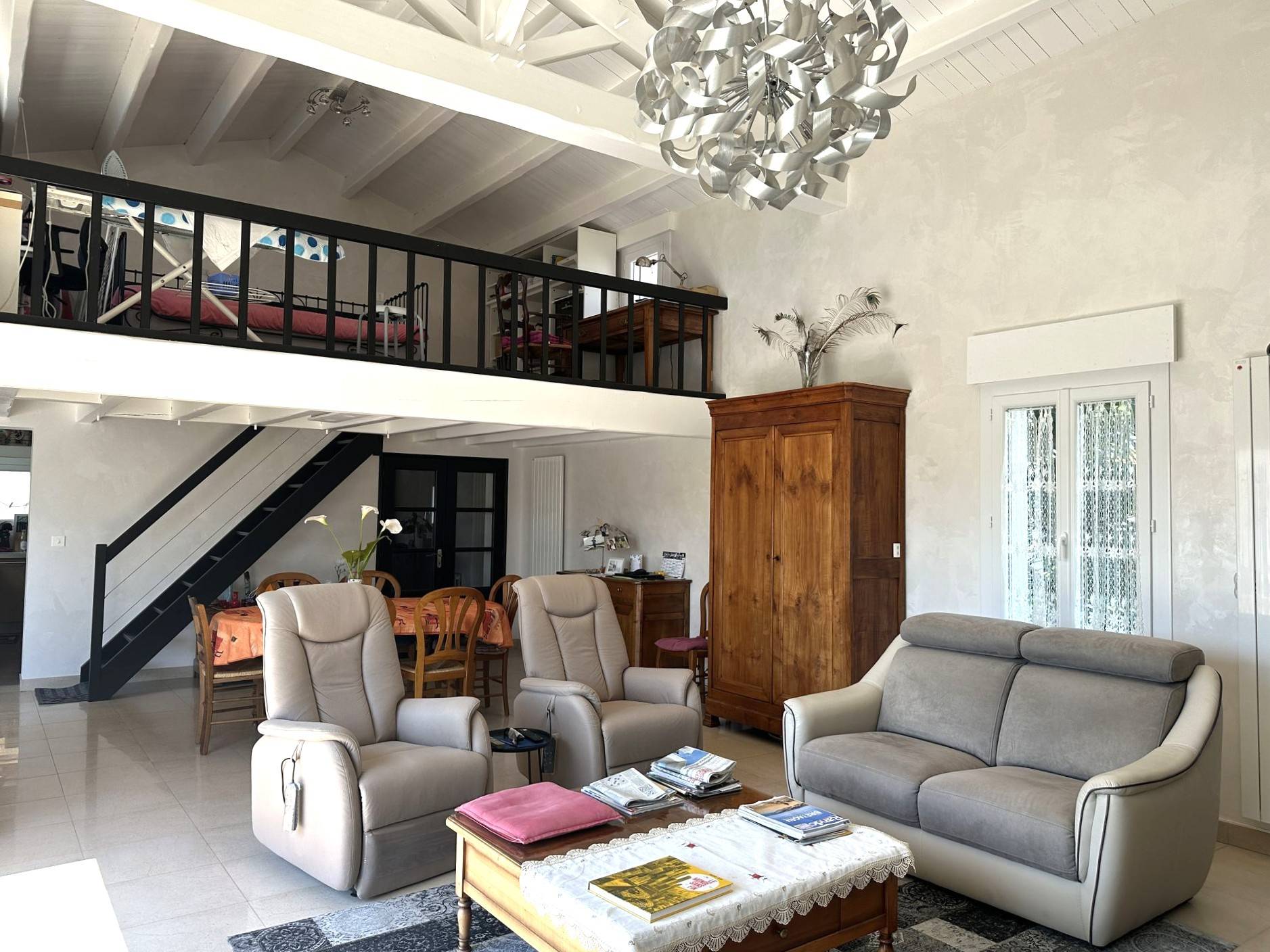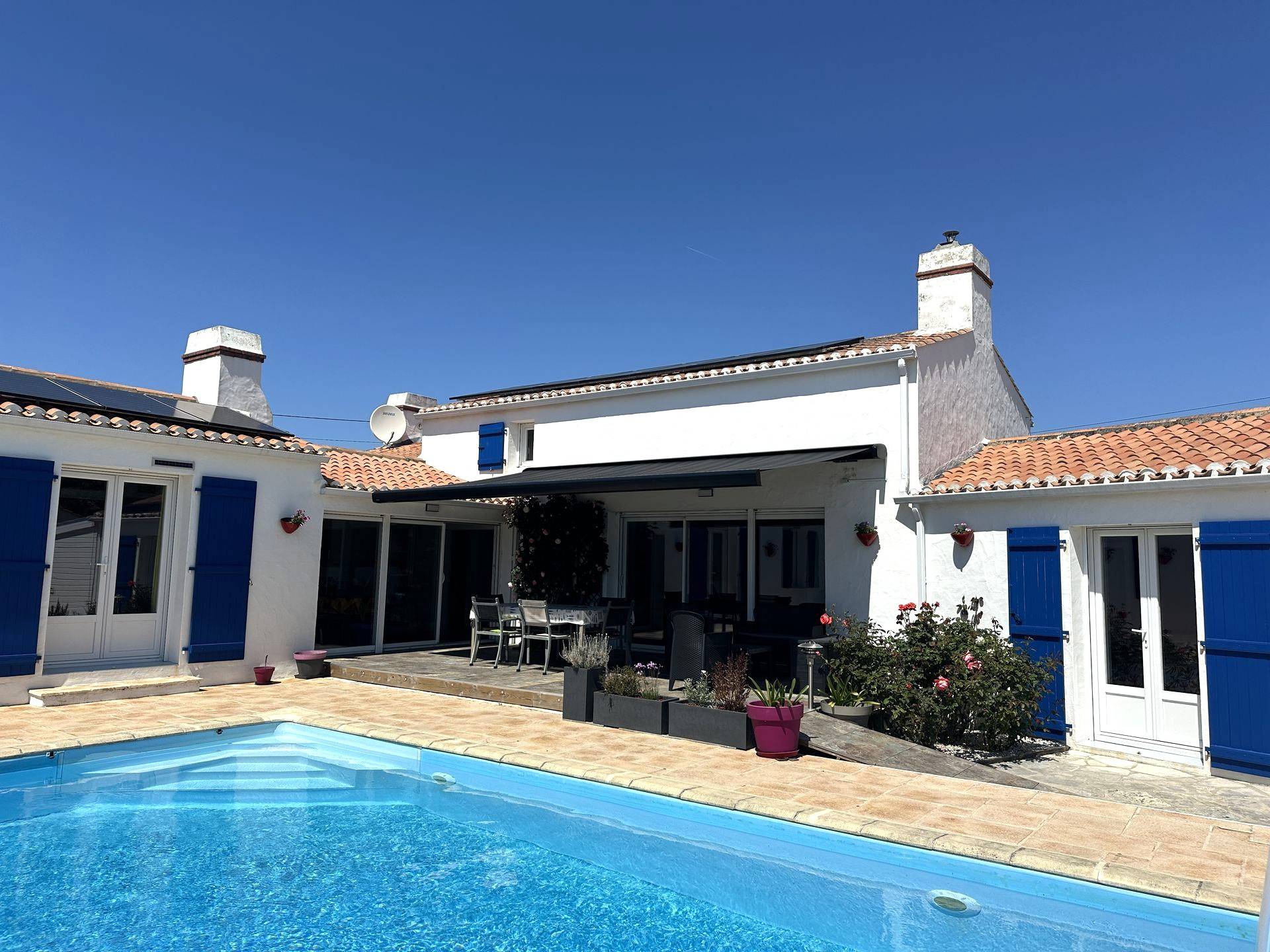 Cette maison de plain-pied a toujours été parfaitement entretenue et profite d'une parcelle de 818 m². Elle dépend de la commune de Saint Hilaire de Riez et pourtant elle est à seulement 600 m des commerces de Croix-de-Vie, 900 m de l'embarcadère et 1km de la plage de Boisvinet. L'exposition, plein sud, ainsi que les grandes ouvertures de la pièce de vie laissent entrer largement la lumière. A cette pièce de vie s'ajoutent une mezzanine, une cuisine équipée et un coin repas pour un total de 84 m². 3 chambres profitent du soleil levant et la 4eme du soleil couchant. L'ensemble des pièces s'ouvre sur l'espace piscine et sa terrasse, ainsi que le jardin. Sur l'arrière, un espace goudronné est dédié au stationnement de plusieurs voitures, même d'un camping-car, en plus du garage de 28 m². Les dépendances sont toujours utiles comme l'arrière-cuisine, la cave en sous-sol, l'atelier et le cabanon de jardin. Côté pratique : De nombreuses ouvertures ont été changées et des panneaux solaires ont été installés optimisant le diagnostic de performance énergétique (D). Poêle à pellets, piscine chauffée (PAC), volets roulants et banne électriques. 2 salles d'eau, 3 WC. Les informations sur les risques auxquels ce bien est exposé sont disponibles sur le site Géorisques : www.georisques.gouv.fr