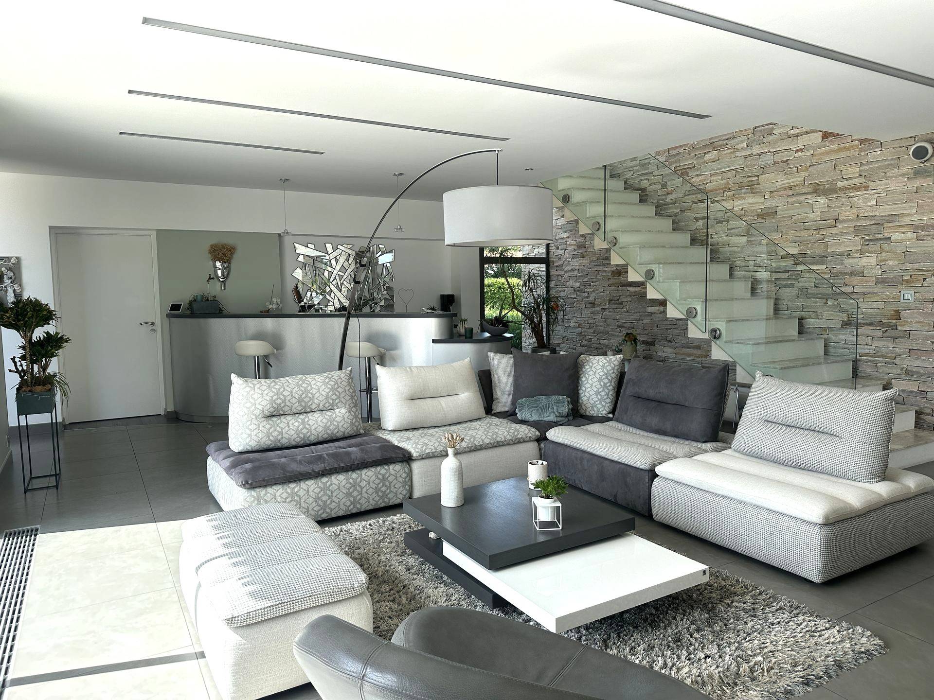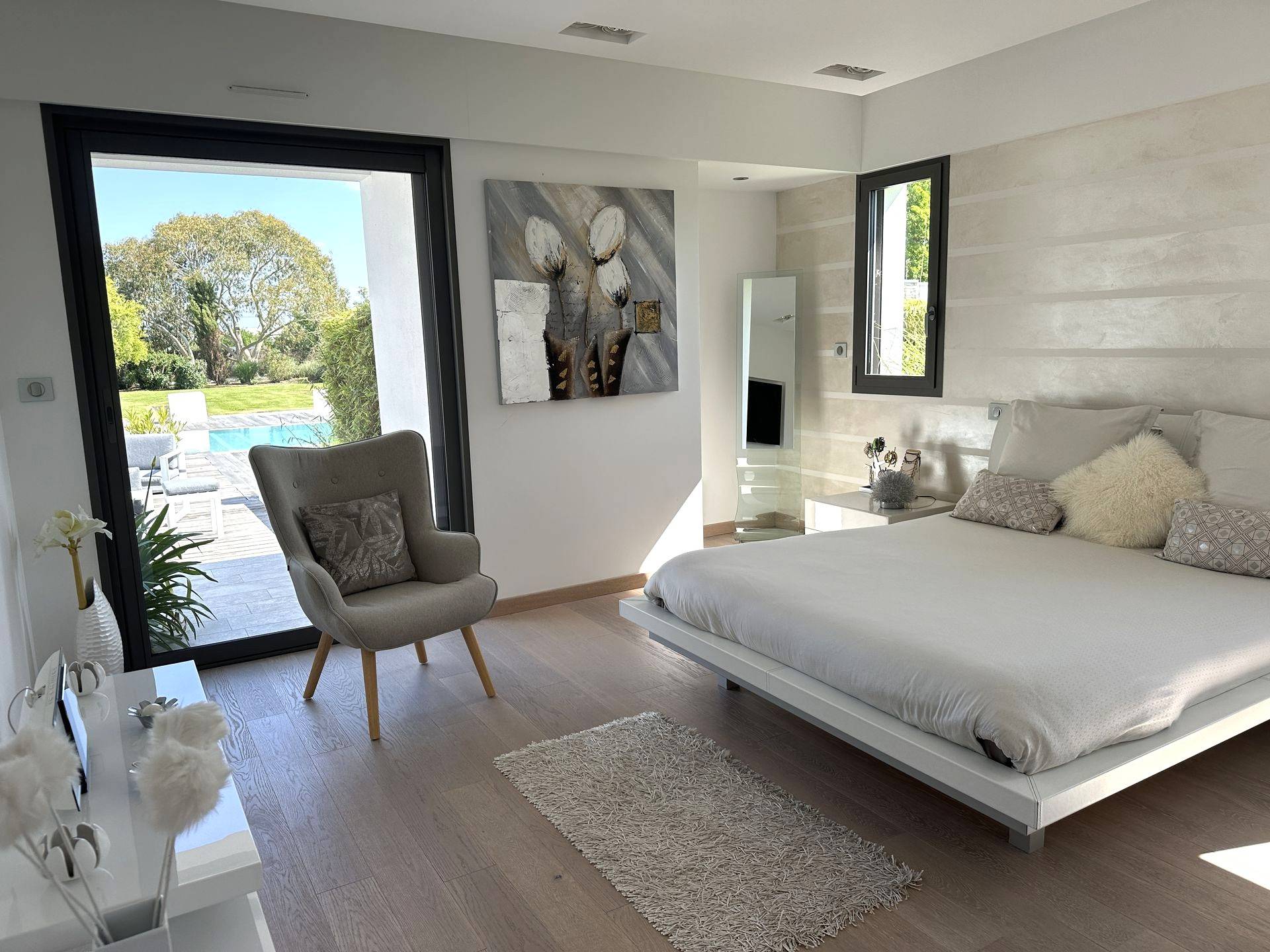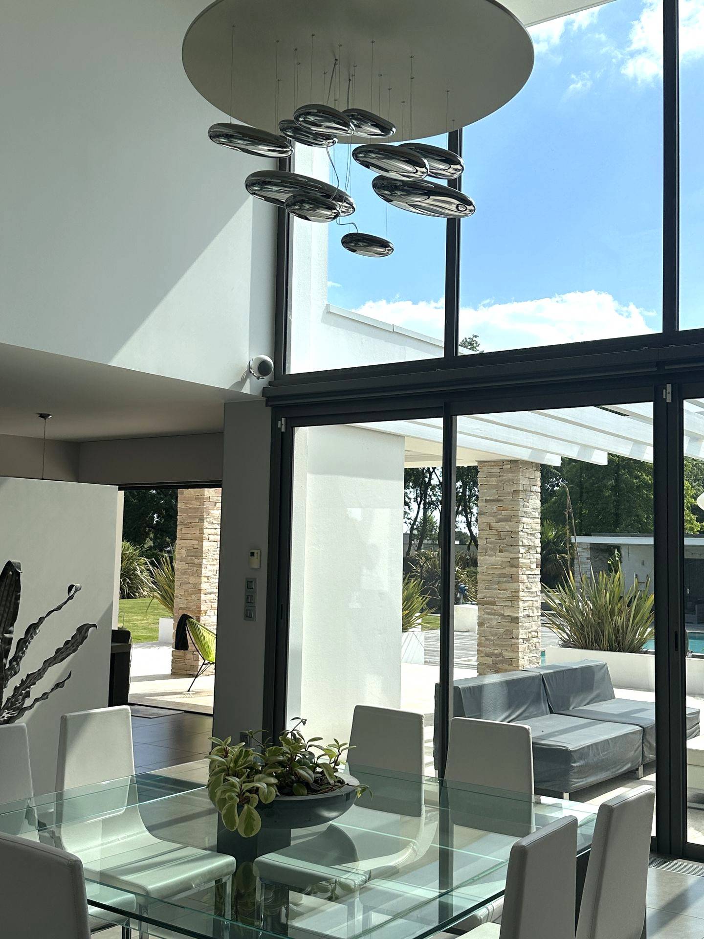 Dans un quartier résidentiel de St Hilaire de Riez, cette maison compte un peu plus de 380 m² habitables. Le mélange subtil du bois, du verre, de la pierre et du béton, donne beaucoup de chaleur à cette architecture contemporaine où propriétaires et architecte se sont faits plaisir dans les moindres détails, confort et bien être étant leur préoccupation. La pièce de vie de 124 m² est baignée de soleil et ses différents espaces (salon, bar, séjour et cuisine) la rendent conviviale. A la suite parentale de 40 m², s'ajoutent 3 chambres de plain-pied et 2 autres à l'étage. Une pièce est dédiée aux jeux, une autre au cinéma et le poolhouse est équipée d'un hammam et d'un spa. La piscine à débordement est chauffée et son bassin en mosaïque d'Italie est chic, les terrasses qui l'entourent sont en pierre pour 111 m² et en bois pour 106 m². Rien n'a été laissé au hasard, la diffusion musicale, les jeux de lumière, les dépendances, etc. tout a été parfaitement étudié. Le terrain clos de plus de 6000 m² est remarquablement aménagé. Pour preuve, les propriétaires le confient de temps en temps à des boîtes de com pour réaliser des shooting photos pour des catalogues de mobilier de jardin, mais il n'y a pas d'obligation à continuer bien sûr ! Cette propriété aux prestations luxueuses est une des plus vastes à seulement quelques kilomètres des plages et de Saint Gilles Croix de vie. Les informations sur les risques auxquels ce bien est exposé sont disponibles sur le site Géorisques : www.georisques.gouv.fr