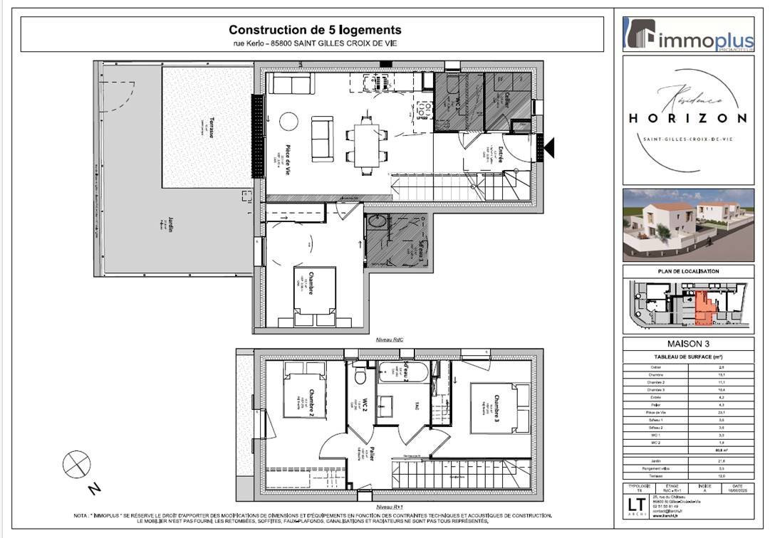 Petit programme de 5 maisons à construire avec stationnement, réalisé par un promoteur local. Maison de 80, 80 m² habitables comprenant 3 chambres, un rangement vélos, deux stationnements. Parcelle de 101 m² (dont 21,06 m² de jardin + 12 m² de terrasse) Côté pratique : Frais réduits (soit prix acte en mains de 429 000 EUR) Les informations sur les risques auxquels ce bien est exposé sont disponibles sur le site Géorisques : www.georisques.gouv.fr