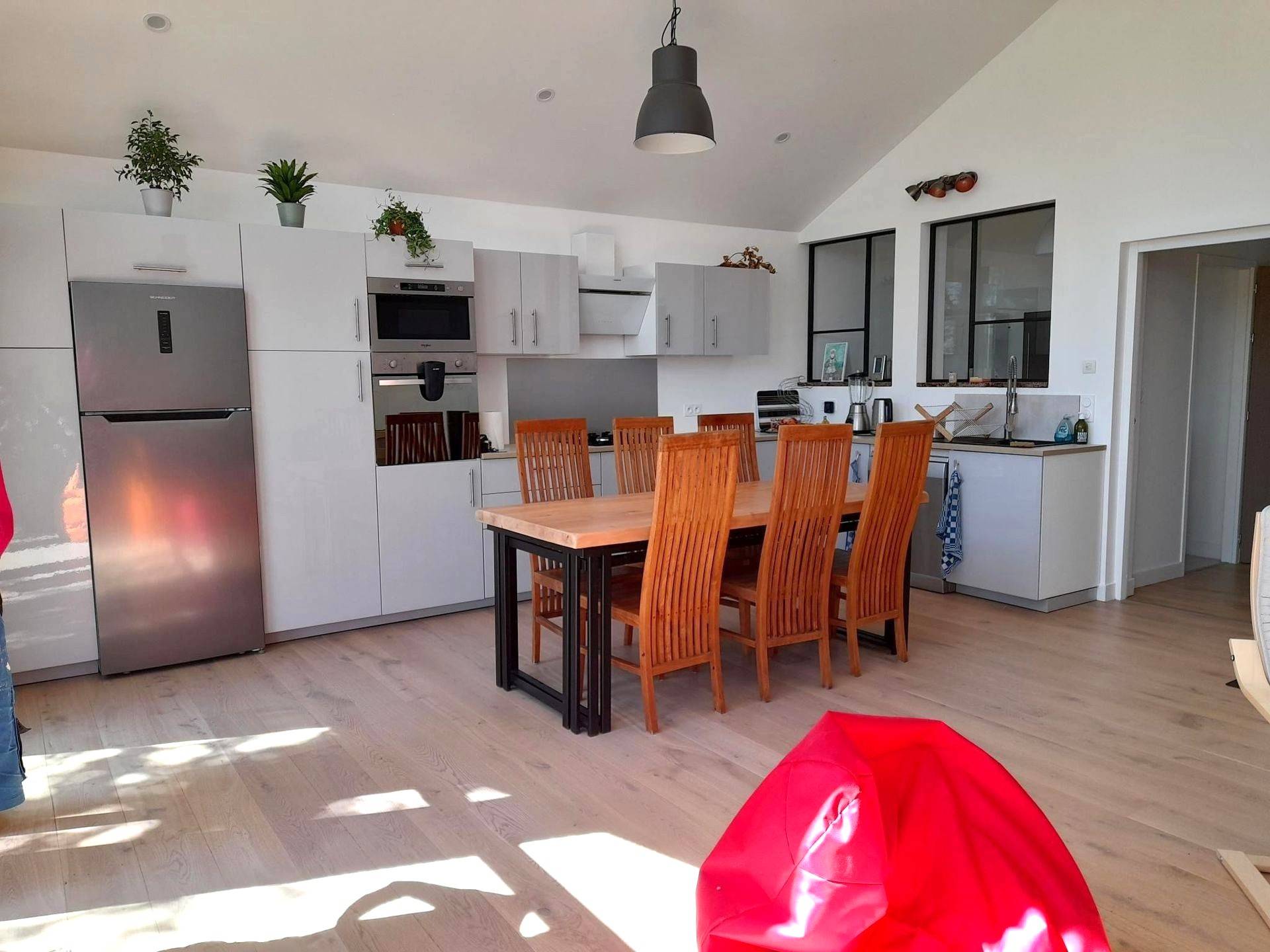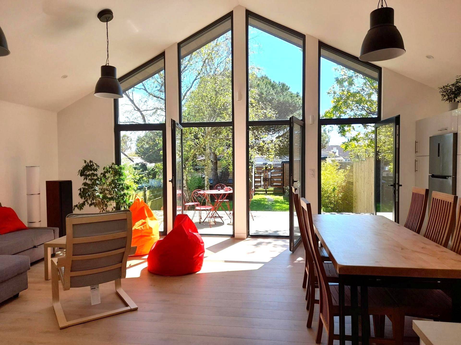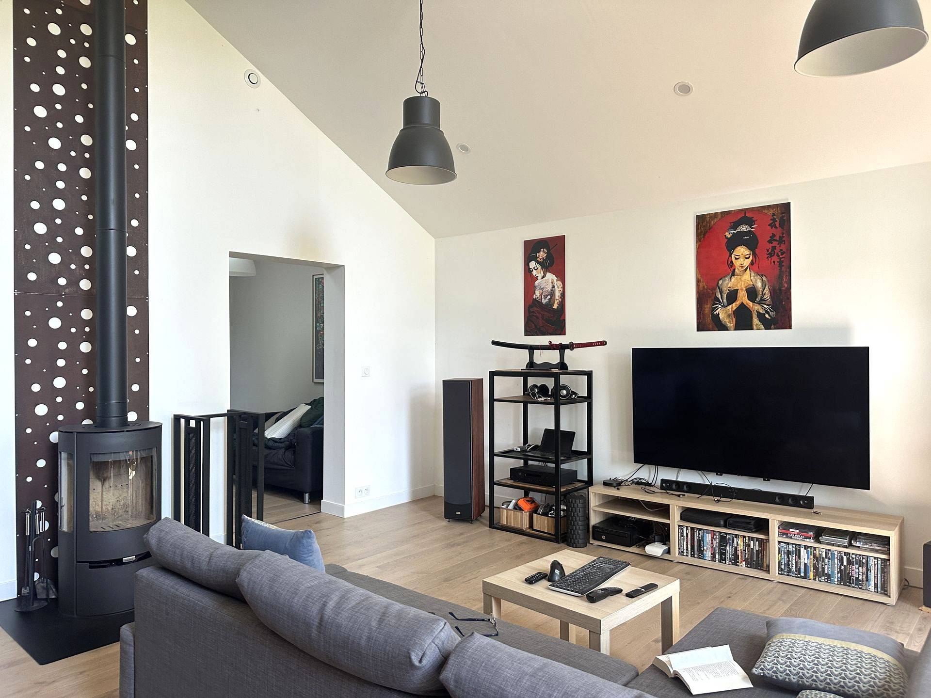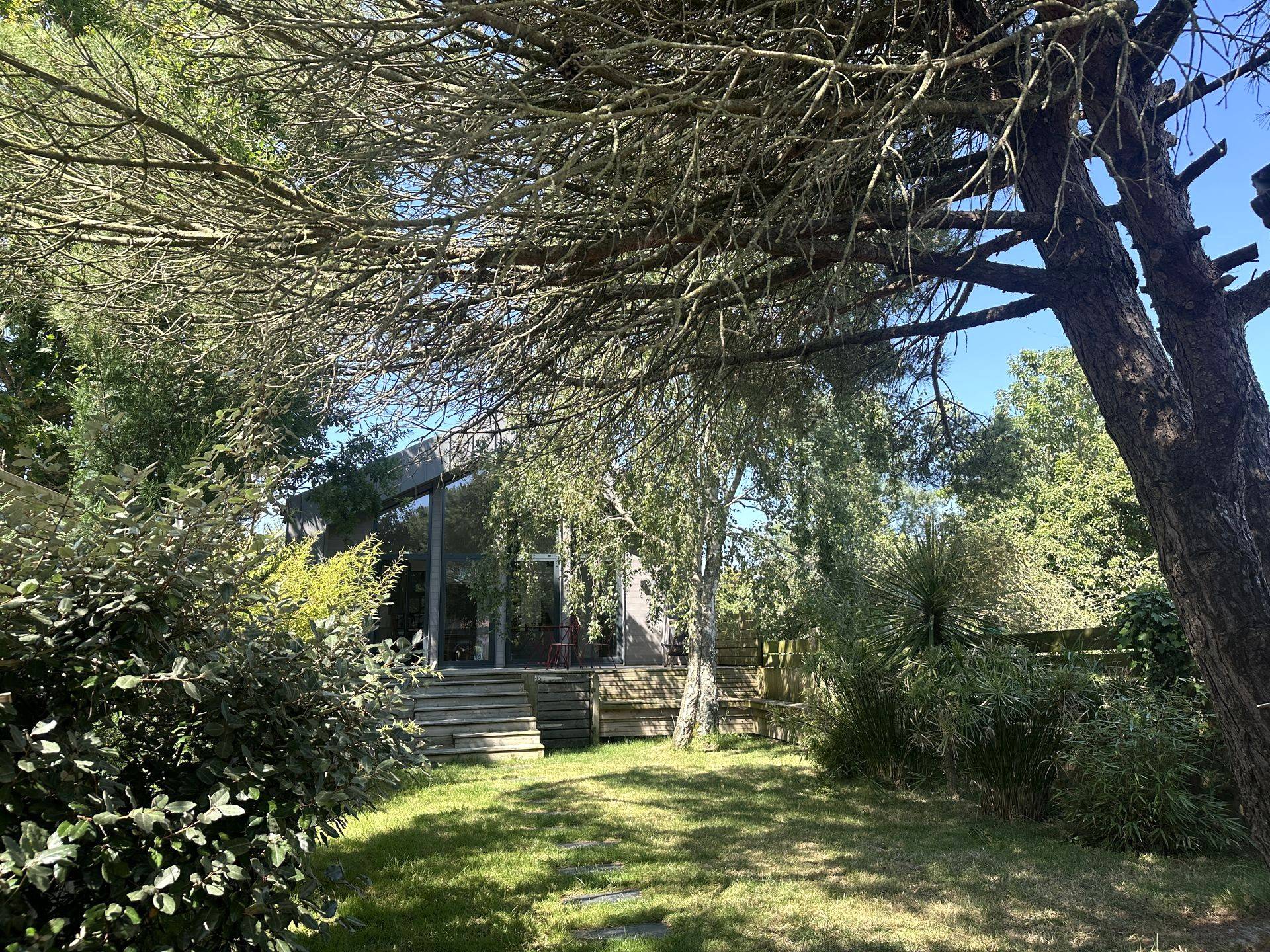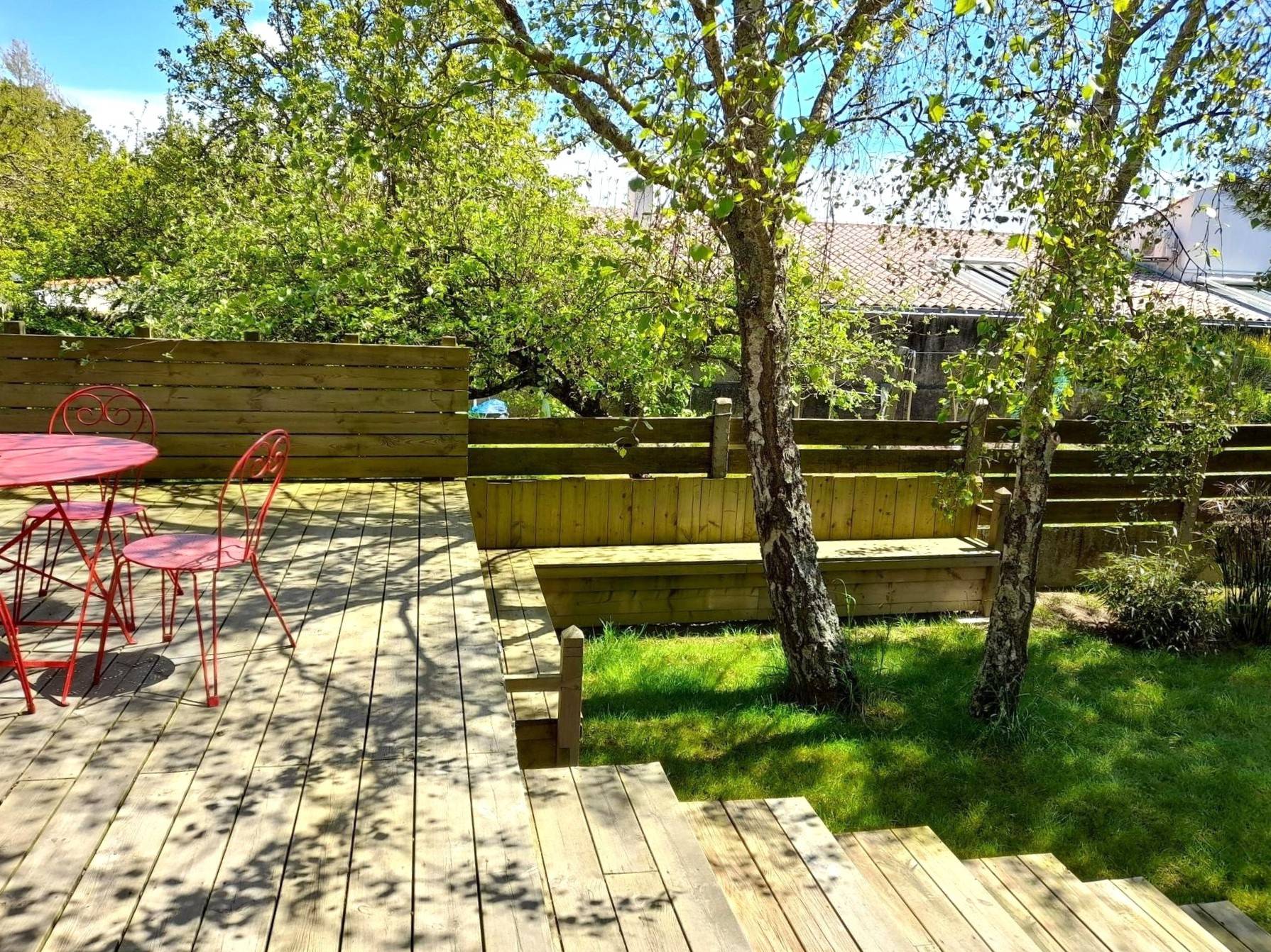 Cachée au fond d'un petit passage privé, cette maison lumineuse en bois été construite en 2023. Côté sud, La pièce de vie de 40 m² s'agrandit sur une terrasse de la même surface, face au jardin joliment arboré. Sur l'arrière, 2 chambres s'ouvrent sur une terrasse de 22 m² qui profite d'une très belle vue sur le plan d'eau de la Soudinière. S'ajoutent une troisième chambre et 2 mezzanines permettant ainsi d'accueillir famille et amis. L'environnement naturel, au calme d'une impasse, est surprenant si près des commerces. Côté pratique : 92 m² habitables sans compter les 18 m² de mezzanine. Cuisine équipée, lingerie, wc séparés, vmc double flux, poêle à bois. 2 stationnements, terrain de 302 m² clos. Cabanes de jardin Les informations sur les risques auxquels ce bien est exposé sont disponibles sur le site Géorisques : www.georisques.gouv.fr