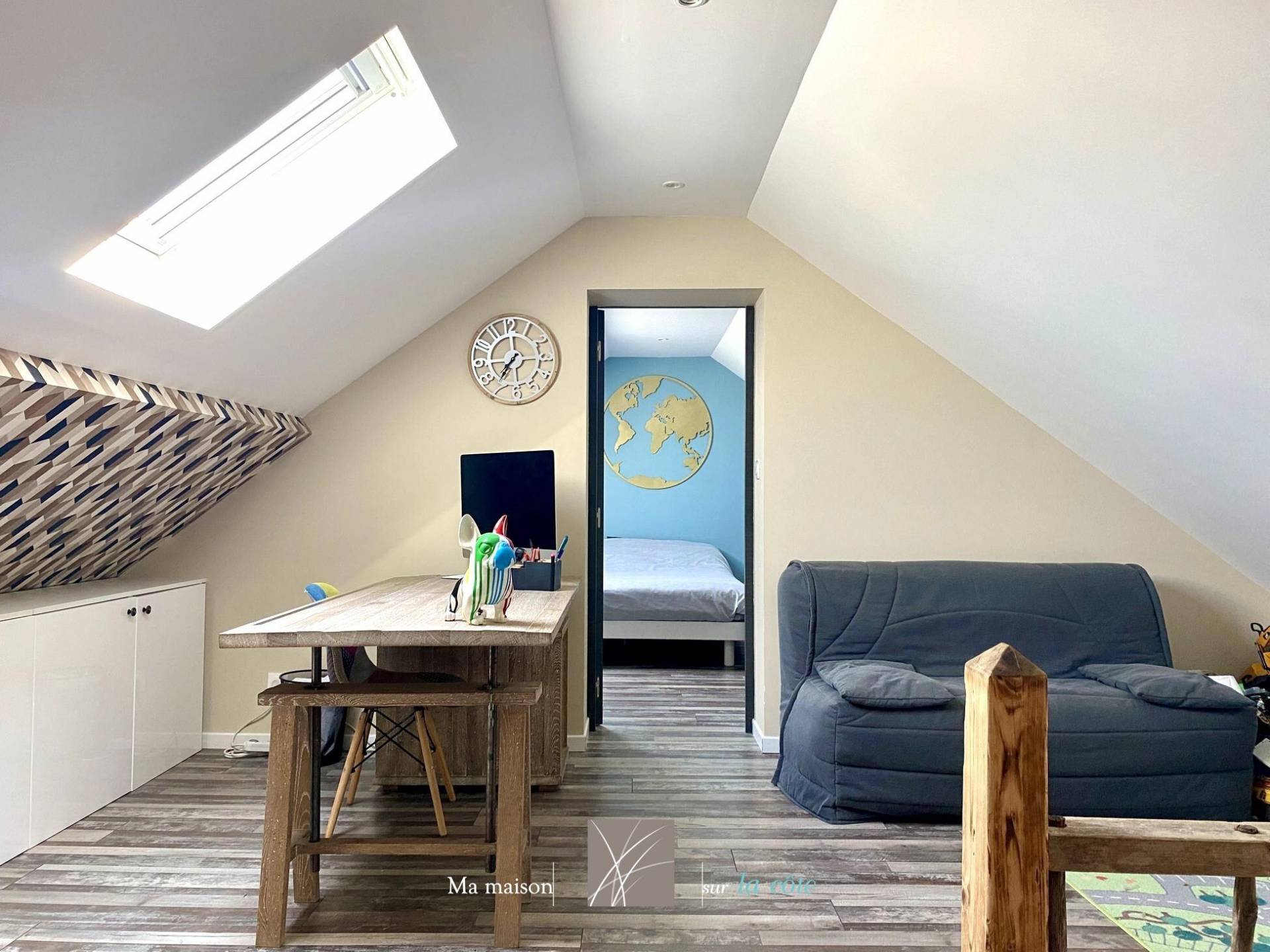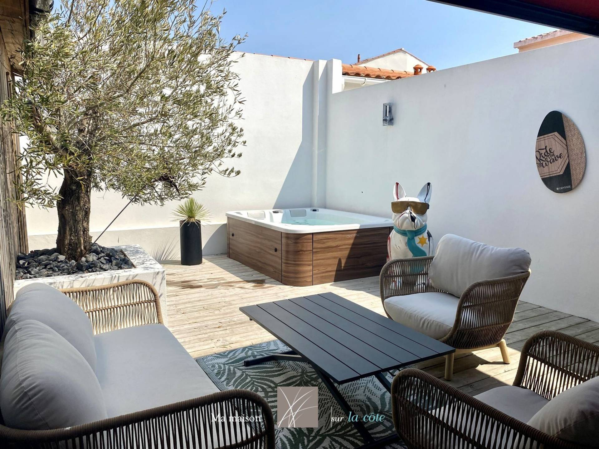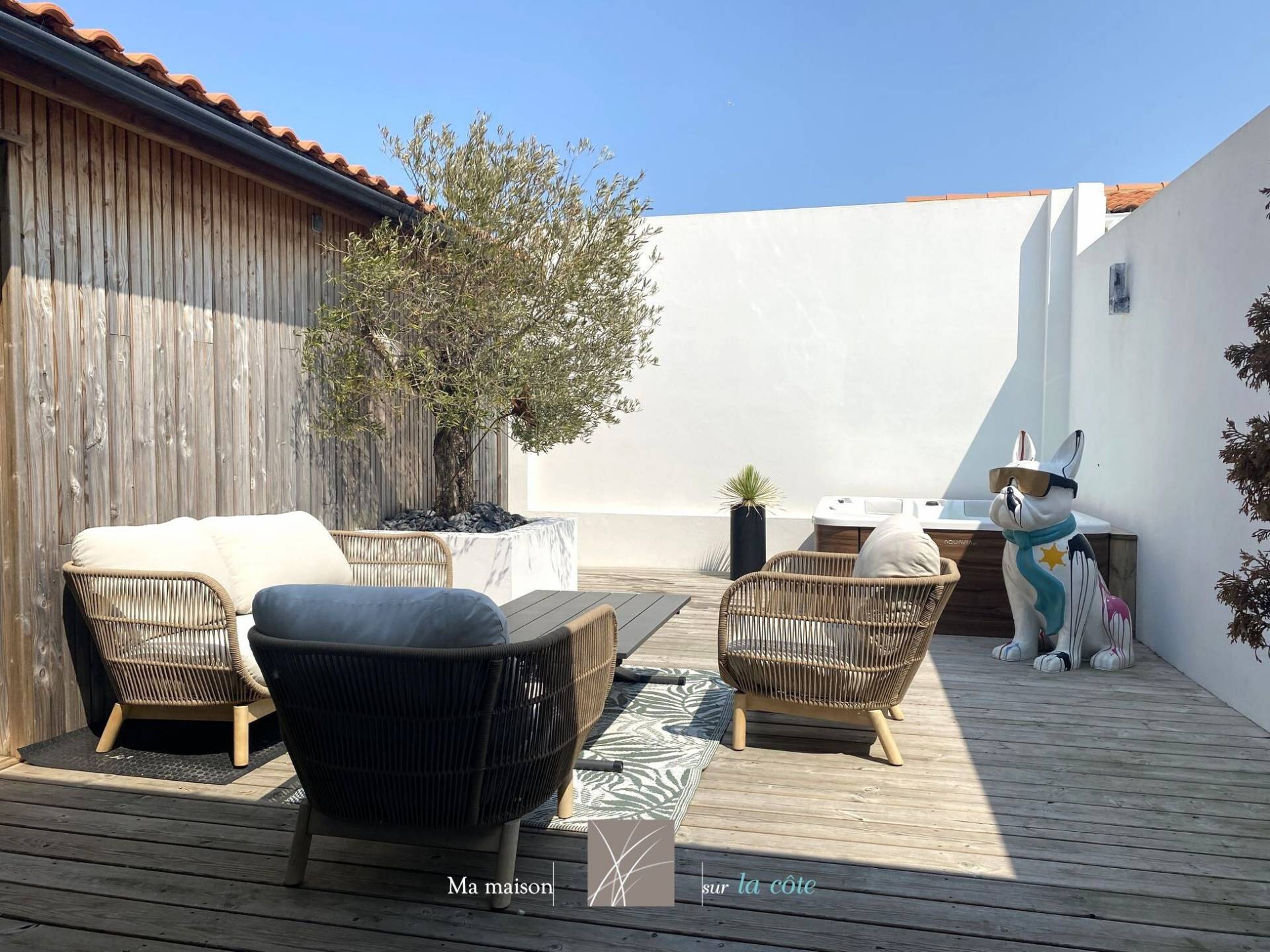 Une véritable pépite située côté Croix de Vie, à deux pas des marchés et des ports. Cette magnifique maison de ville des années 30 a été entièrement rénovée avec soin par les propriétaires. Elle allie avec élégance le charme de l'ancien et le confort moderne. D'une superficie de 124 m² (sans compter les 11m² sous 1,8m) , elle propose au rez-de-chaussée une belle pièce de vie lumineuse ouverte sur une terrasse en bois, une cuisine moderne aménagée et équipée, une suite parentale ainsi qu'une lingerie. À l'étage, un grand palier peut très bien accueillir un bureau ou un dortoir. Il dessert deux chambres confortables et une salle de bain. Vous profiterez depuis ce niveau des vues dégagées sur les toits d'un côté et sur un immense jardin de l'autre. Côté extérieur, vous profiterez d'une cour intime de 32 m² équipée d'un SPA et une cour qui accueille une cuisine d'été à ce jour, idéale pour partager des moments de détente en famille ou entre amis. Un garage ainsi que des places de stationnement devant la maison viennent compléter les prestations. L'emplacement recherché et les volumes généreux font de cette maison un bien rare sur le secteur de Croix de Vie. Côté pratique : - Poêle à granules, - Tout électrique, - 1 wc par niveau, Les informations sur les risques auxquels ce bien est exposé sont disponibles sur le site Géorisques : www.georisques.gouv.fr