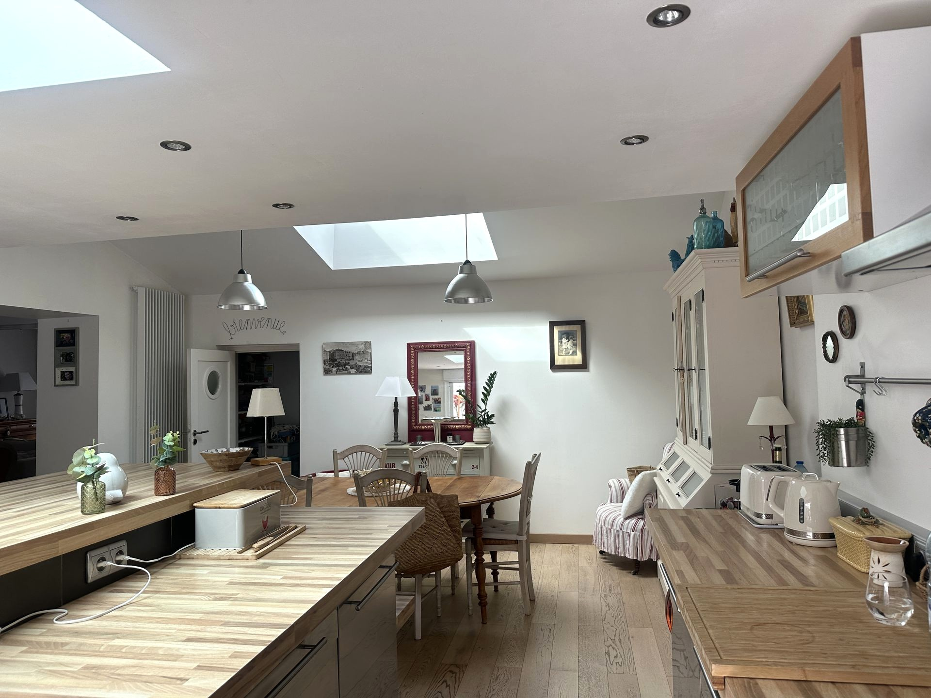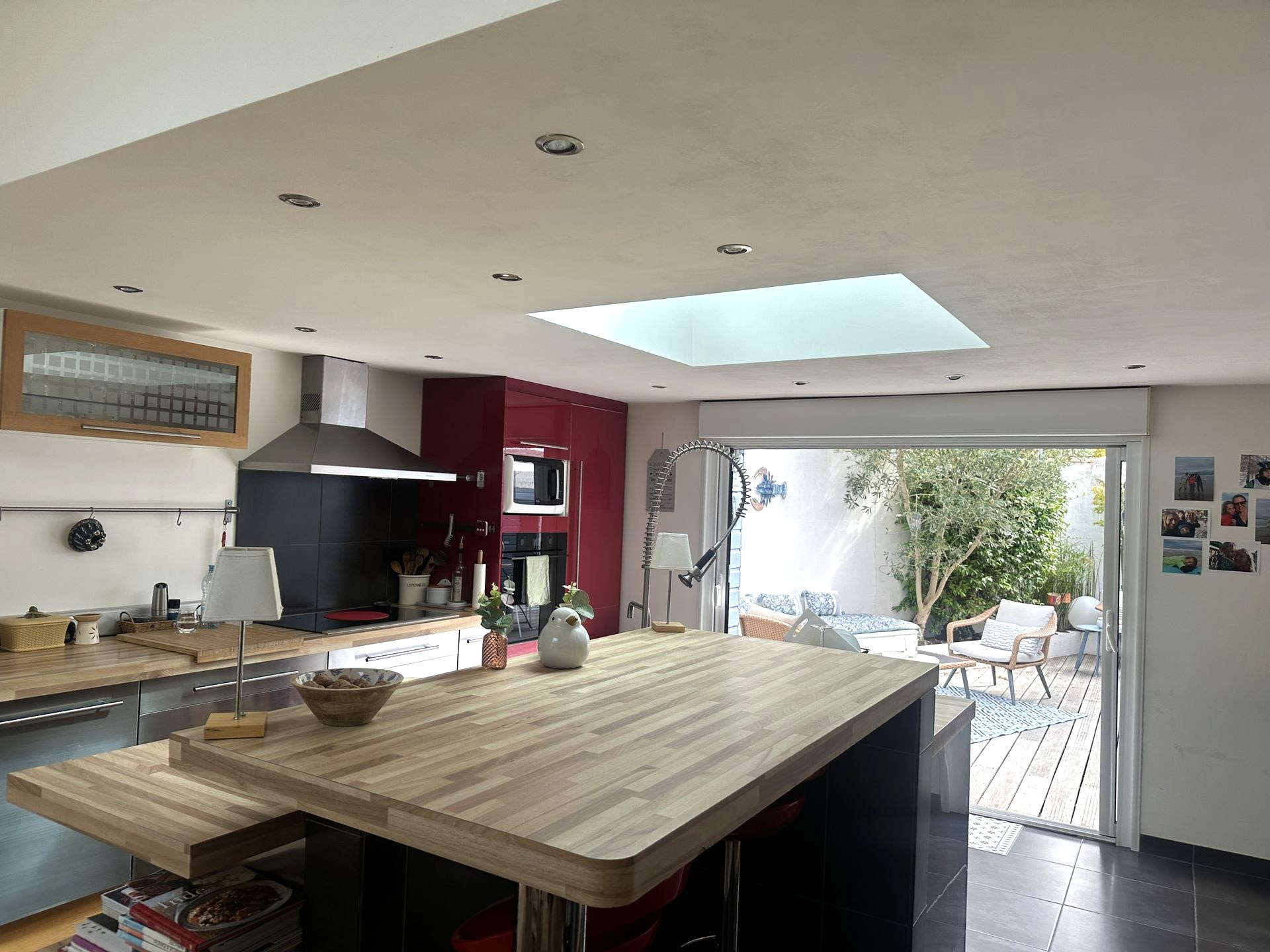 Dès l'entrée, le ton est donné : on se sent bien tout de suite dans cette surprenante maison où la décoration est particulièrement soignée. Au rez-de-chaussée, la pièce de vie de 84 m2 est chaleureuse. D'un côté, le grand salon est cosy et tourne autour de la cheminée. De l'autre, la salle à manger accueille une grande tablée et l'ilot central de la cuisine est pratique pour prendre l'apéro entre amis. Bien équipée, cette cuisine s'ouvre aussi sur la terrasse de 30 m2 plein sud. Cet espace extérieur est protégé des vents d'Ouest, et ses jardinières plantées d'un très bel olivier, d'un palmier, d'un jasmin, et de papyrus lui assurent, en plus des murs hauts, de l'intimité en hyper centre-ville. Toujours au rez-de-chaussée, une chambre s'ouvre sur le patio, et sa salle d'eau et son dressing la rendent bien agréable. Le mur de pierres de la cage d'escalier est visible du salon et du palier qui peut être aménagé en bureau ou rendre service pendant les grandes fêtes familiales pour y faire dormir 1 ou 2 personnes. A l'étage, la suite parentale de 32 m2 (chambre, dressing et salle de bains) est très agréable. Et, à l'opposé, se trouvent 2 autres chambres qui se partagent une salle de bains. Les 4 chambres sont exposées à l'Est, profitant donc du soleil levant, plus fraiches lors des grandes chaleurs estivales. Située à quelques pas de la place du Marché aux herbes et du centre commercial, cette maison est agréable à vivre en toutes saisons et son garage est bien utile dans ce quartier Côté pratique : 186 m2 habitables dont 120 au rdc, chaudière gaz à condensation, portail et volets électriques, cheminée insert, 1 WC à chaque niveau. Les informations sur les risques auxquels ce bien est exposé sont disponibles sur le site Géorisques : www.georisques.gouv.fr