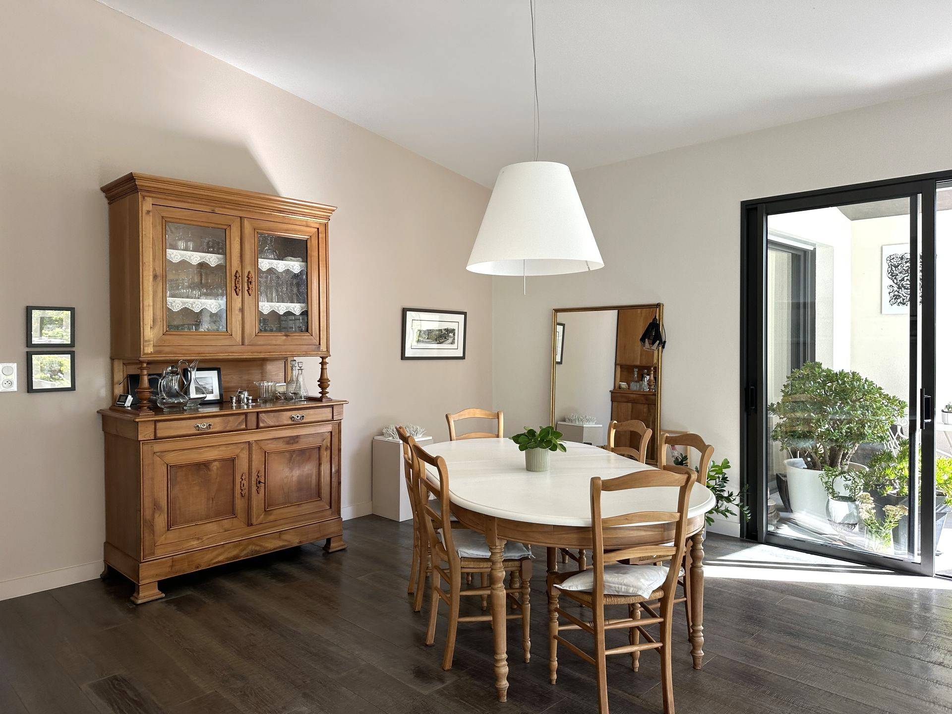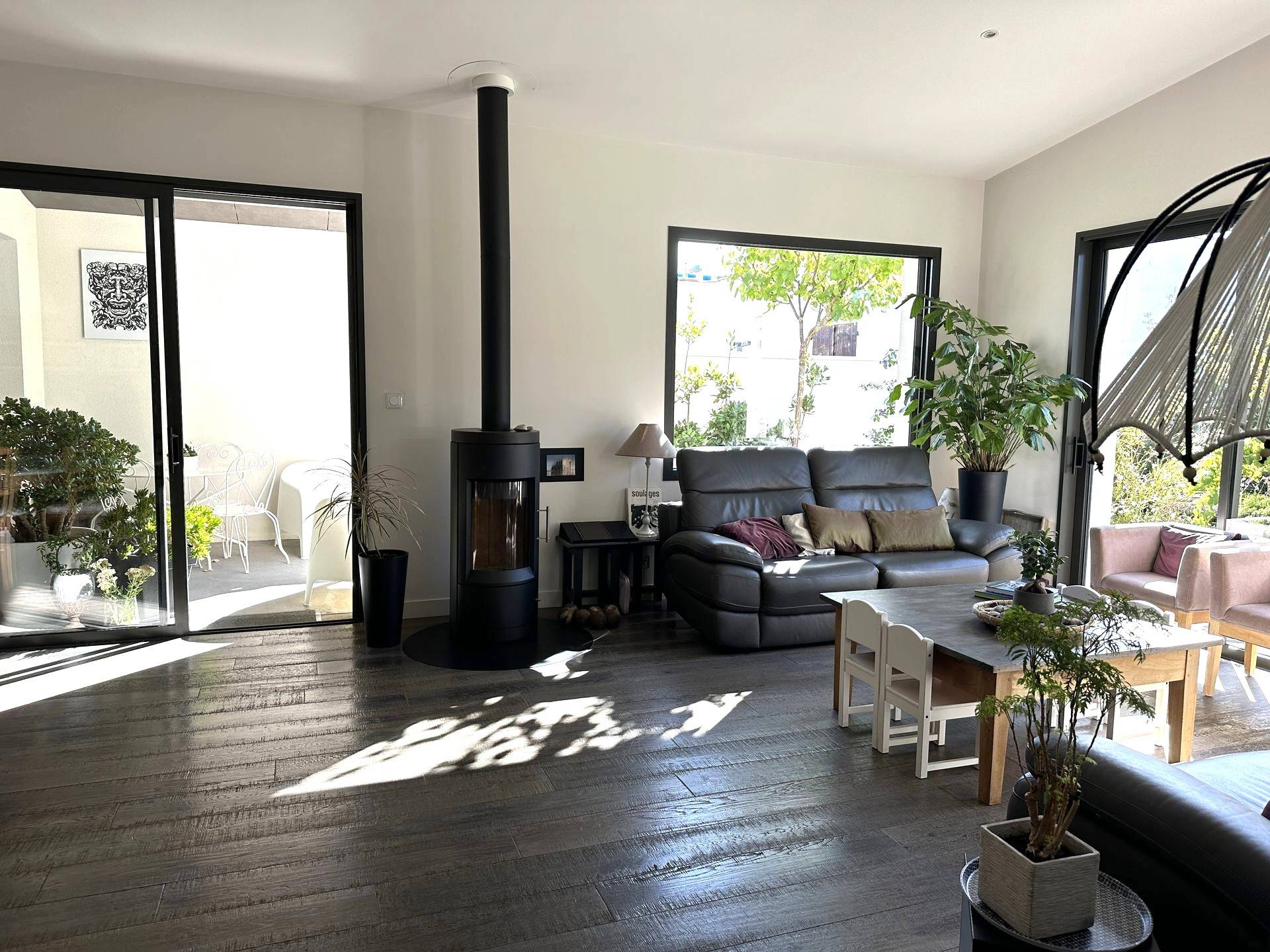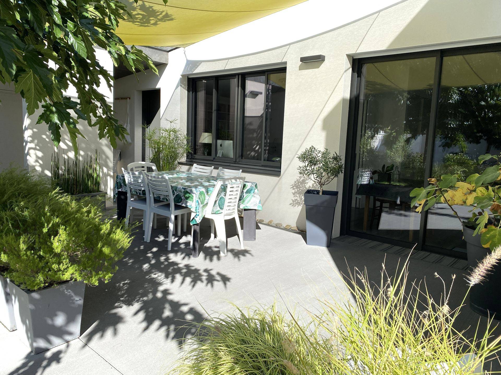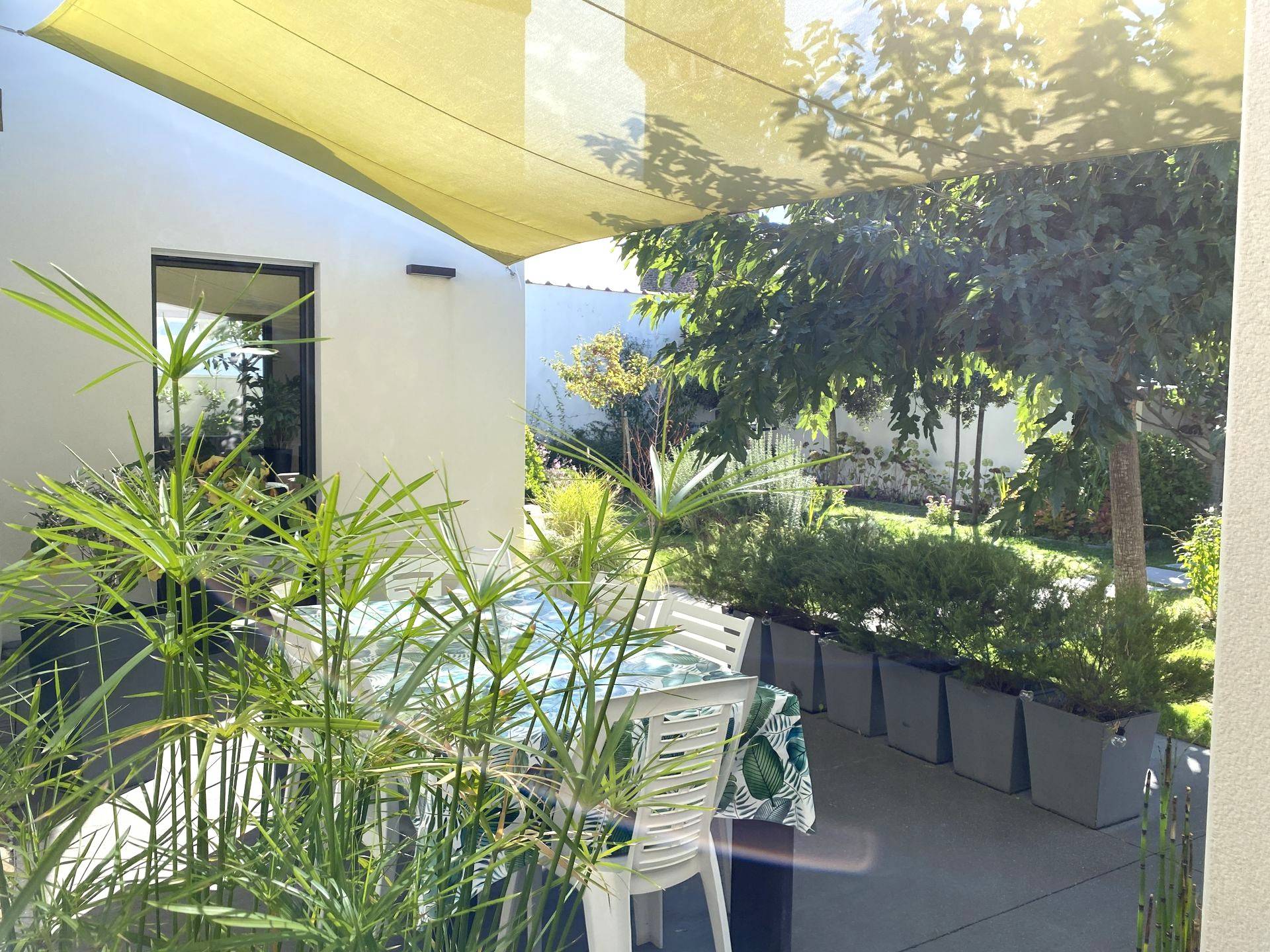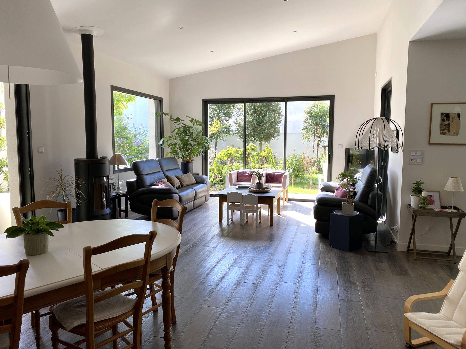 Cette maison contemporaine, construite en 2016, est entièrement de plain-pied. Située tout proche des marchés de St Gilles et du centre commercial, elle convient parfaitement pour une famille désireuse de tout faire à pied, même aller à la Grande Plage et au cinéma. La pièce de vie, la cuisine équipée et la bibliothèque sont lumineuses et s'ouvrent, au sud, sur un jardin joliment paysagé et une terrasse abritée d'une voile d'ombrage. L'espace nuit est bien à part : 2 chambres se partagent un grand dressing aménagé et la 3ème a un grand placard. La salle de bains s'aère grâce à sa large fenêtre et est équipée d'une baignoire et d'une douche italienne. Une 2ème douche est appréciée au retour de la plage. Les propriétaires ont accordé beaucoup de soin à la décoration de l'habitation et même du jardin, contribuant à une ambiance chaleureuse de cette maison moderne en coeur de ville. Son environnement est agréable et l'accès piéton, à l'arrière de la maison, est pratique pour accéder au jardin directement. Le stationnement de plusieurs voitures est possible, sur l'aire de stationnement et dans le garage de 27 m². Côté pratique : 162 m² habitables, poêle à bois, cuisine aménagée et équipée, 2 préaux, portail et volets électriques, chauffage au sol (gaz de ville). Lingerie. Terrain de 508 m². Les informations sur les risques auxquels ce bien est exposé sont disponibles sur le site Géorisques : www.georisques.gouv.fr