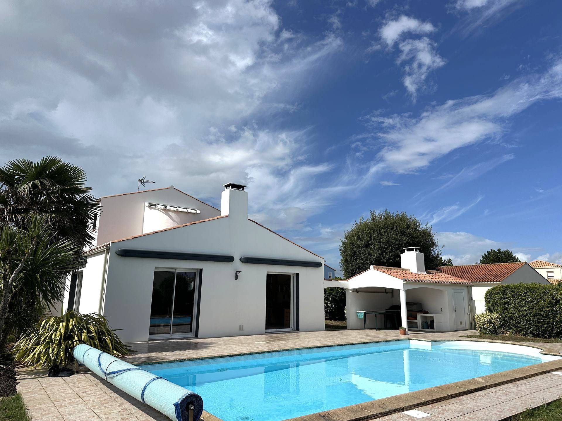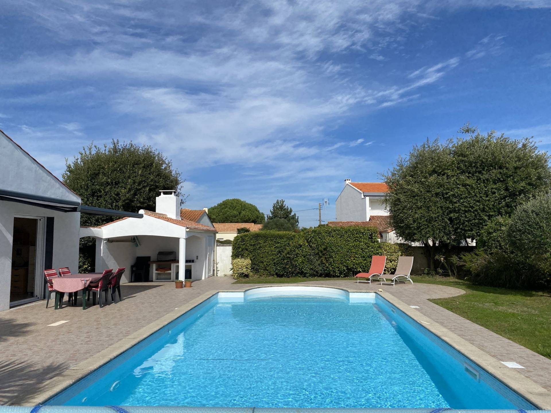 Cette belle maison traditionnelle a été construite en 2002 au coeur de son terrain paysager de 836 m². Sur les 141 m² habitables ,113 sont de plain-pied, comprenant les pièces de vie et la suite parentale. A l'étage, 2 autres chambres avec salle d'eau et wc permettent d'accueillir famille et amis. La pièce de vie de 48 m² s'ouvre, grâce à ses baies à galandage, sur la terrasse protégée de 3 bannes électriques et l'espace piscine. S'ajoute La cuisine équipée, semi ouverte, qui peut être fermée facilement, selon les désirs. Les dépendances sont bien utiles comme le garage de 31m², la cave, le préau et le local technique. Le terrain clos est agréable, surtout qu'il est légèrement rehaussé par rapport aux voisins, donnant ainsi l'impression de hauteur. Le jardin d'accueil est bien paysager, l'espace piscine (au soleil toute la journée) et le terrain de pétanque feront le bonheur des petits et des grands. Très lumineuse et confortable, cette maison convient parfaitement pour une vie à l'année et sa proximité à la plage de la Pelle à Porteau et la corniche la rend agréable aussi pour les vacances. Côté pratique : cuisine aménagée et équipée, chauffage par le sol (chaudière à condensation au gaz de ville) cheminée insert. Les informations sur les risques auxquels ce bien est exposé sont disponibles sur le site Géorisques : www.georisques.gouv.fr