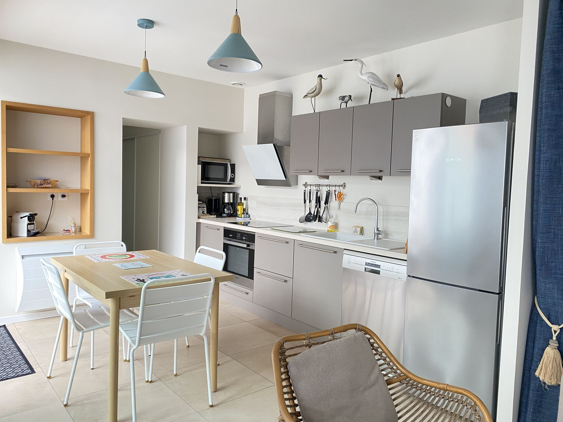 Toute proche du bassin, de la corniche et l'école de voile, cette charmante maison de 74m2 a été entièrement rénovée, par des artisans, en 2020. La pièce de vie de 27 m2 s'ouvre sur une terrasse de 25 m2, à l'abri des vents dominants, et protégée, pour une moitié, par une banne électrique. Les 3 chambres permettent d'accueillir 6 personnes confortablement. La plus grande a sa propre salle d'eau, les 2 autres se partagent une grande salle d'eau avec 2 vasques. Petite astuce : un rideau, bien épais, a été installé sur un rail au plafond pour donner de l'intimité à un couchage d'appoint, dans le salon. Dans la cour, le stationnement d'un véhicule est prévu et le portail électrique est bien utile. Sur l'arrière, la sieste sera appréciée dans le patio. Au calme d'une ruelle de Boisvinet, cette maison convient aussi bien en résidence principale qu'en résidence secondaire, même locative. Côté pratique : cuisine équipée, nombreux placards, chauffage électrique. Les informations sur les risques auxquels ce bien est exposé sont disponibles sur le site Géorisques : www.georisques.gouv.fr