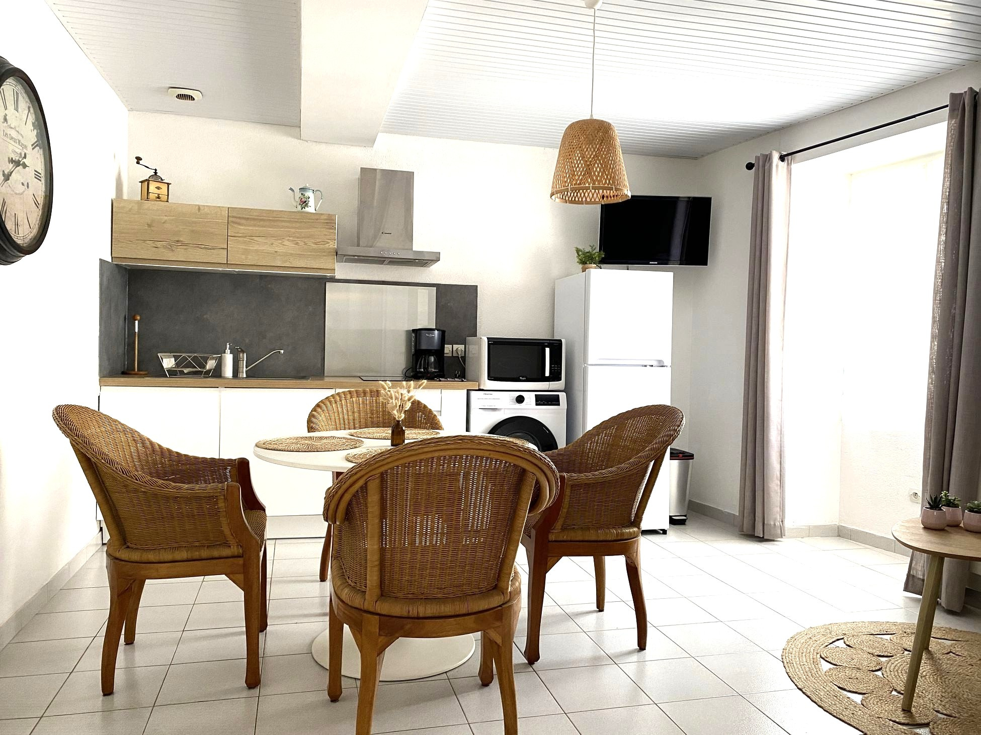 A seulement quelques pas des commerces, la maison de ville de 153 m2 habitables a été transformée en 3 appartements joliment aménagés. Au rez-de-chaussée, le premier de 65 m2 s'agrandit, plein sud, sur une cour de 35 m2 entourée de hauts murs anciens, garantissant son intimité. Ce logement de plain-pied comprend une entrée, une pièce à vivre de 29 m2, 2 chambres avec placard, une salle d'eau et des wc séparés. Sa décoration récente a été particulièrement soignée. Les vélos et les planches de surf trouvent facilement leur place dans la cour qui a un accès direct sur l'extérieur. À l'étage, deux appartements indépendants permettent de recevoir famille, amis, vacanciers et même locataires à l'année. Le premier appartement de 35 m2 comprend 2 pièces. Le second est un peu plus grand avec sa deuxième chambre. Chaque logement bénéficie d'une belle clarté et d'un agencement optimisé, et dans le hall commun, peuvent être rangés poussettes et petit bazar de plage. Situé dans le Vieux Saint Gilles, cet ensemble immobilier est en parfait état. Côté pratique : surface habitable 153 m2, sous-compteurs (électricité et eau), radiateurs et chauffe-eau électriques nouvelle génération. Les informations sur les risques auxquels ce bien est exposé sont disponibles sur le site Géorisques : www.georisques.gouv.fr
