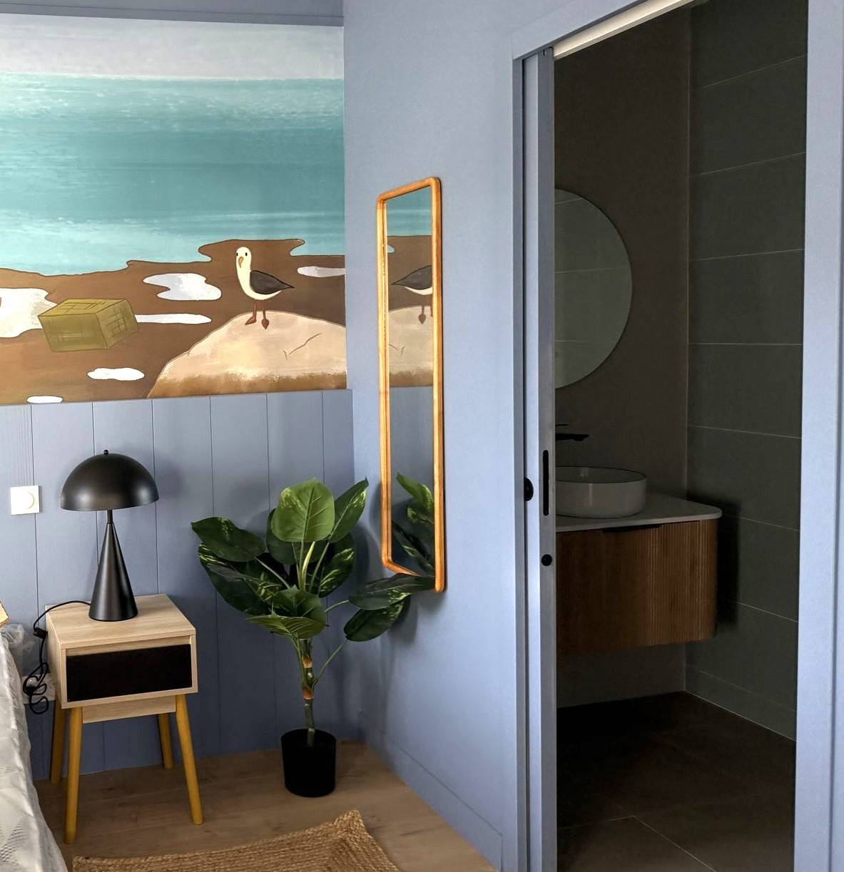 A l'étage, la chambre très lumineuse profite de la 2ème salle d'eau.